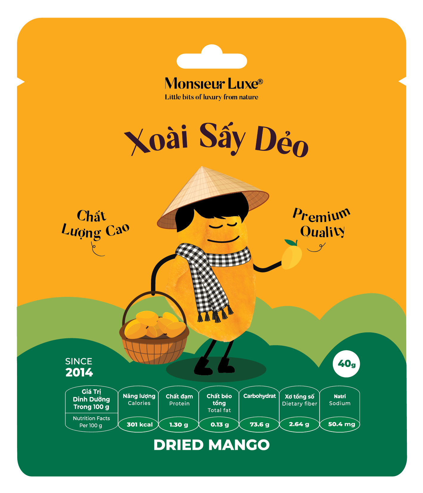 Monsieur Luxe Xoài Sấy Dẻo Ít Đường - Dried Mango Less Sugar - 40g